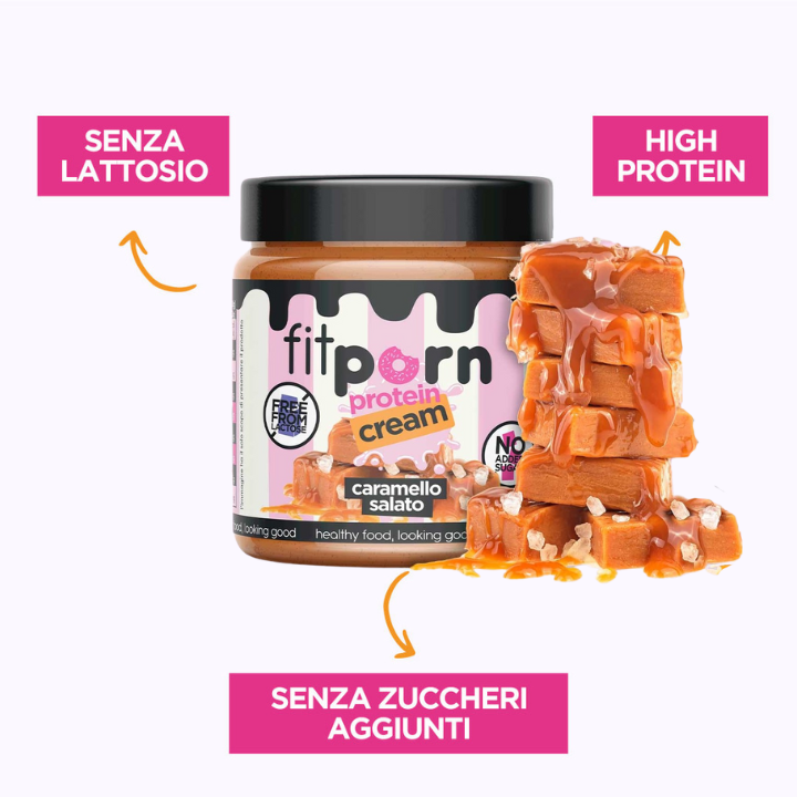 Se sei uno sportivo, segui una dieta ipocalorica, o sei semplicemente una persona attenta alla linea che ama le cose dolci e buone, le creme spalmabili Fitporn sono fatte per te, soprattutto se sei intollerante al lattosio! La crema proteica al caramello salato Fitporn è stata creata per regalarti quei momenti di dolcezza che ci fa tanto bene concederci ogni tanto… ma senza rimorsi e sensi di colpa!