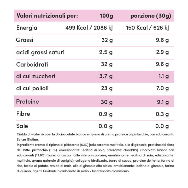 *I Valori Nutrizionali fanno riferimento al gusto Pistacchio e potrebbero leggermente variare selezionando un altro gusto.